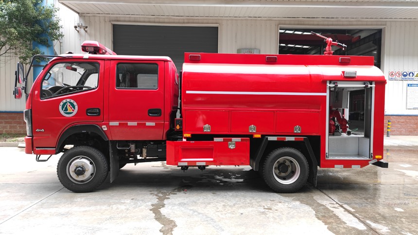 東風四驅水罐消防車采用東風EQ2110GSZ6DJ 越野底盤改裝,原裝雙排駕駛室, 全柴H33-180E60發動機,180馬力,罐體容積4.5立方米,配備CB10/30消防泵,30消防炮。