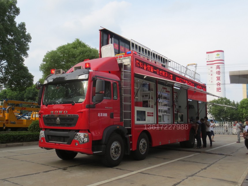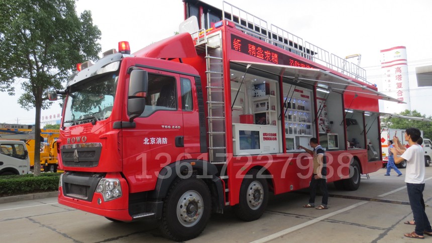 JDF5150TXFXC08型宣傳消防車采用汕德卡底盤為改裝平臺,具備獨立進行消防宣傳功能,宣傳車主要包含多媒體宣傳系統、消防知識查詢系統、廚房安全隱患排查系統、常見火災虛擬演示系統、大屏模擬滅火演示系統、AR火災態勢演練系統、VR火災逃生訓練系統。具備音、視頻宣傳教育和全方位互動體驗的特色,各宣傳教育互動體驗單元模塊,都是貼近國內消防安全宣傳教育實際需要,引進國內外前沿技術定向研發而成。 | |||