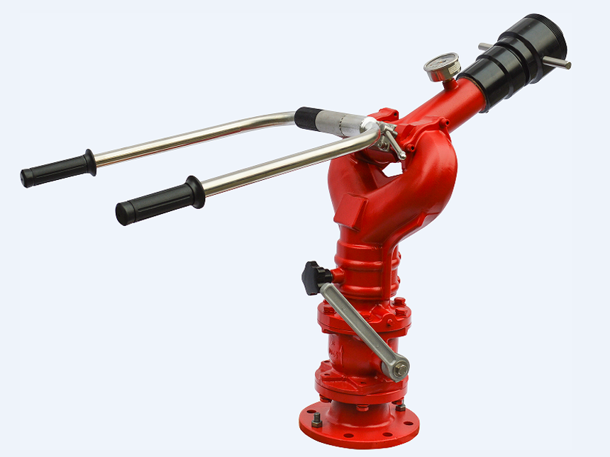 PS30/40固定式消防炮具備流量可調(diào)功能,由炮頭、炮體、球閥和操作手柄等部件組成。噴射水流時(shí),調(diào)節(jié)位于炮頭的流量調(diào)節(jié)環(huán)可調(diào)節(jié)4檔流量,調(diào)節(jié)射流變換調(diào)節(jié)環(huán)可調(diào)節(jié)直流、開花射流形態(tài),能適應(yīng)火場(chǎng)滅火的多種水流要求。操作手柄操縱炮俯仰和水平回轉(zhuǎn)并設(shè)有螺紋鎖緊定位裝置,保證操作人員的使用安全。適用于固定安裝在消防車、倉(cāng)儲(chǔ)區(qū)和港口等需要消防保護(hù)的場(chǎng)所。